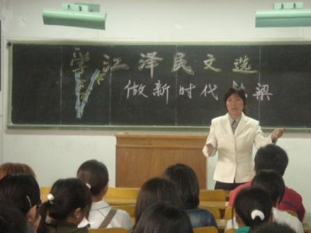 会上首先由团支书周杨为同学们介绍了“江泽民文选”的纲要及主要内容。曲慧敏老师从“四个相结合”、“三讲”,“三个代表”等执政党的建设思想方面给同学们系统阐述了《江泽民文选》的核心内容,同时结合同学们的实际生活在同学们的学习、生活、思想等方面帮助同学们提高思想认识,在同学们关注的恋爱、择业、考研等热点问题上用科学的理论思想为同学们解答了疑惑,使同学们受益匪浅。