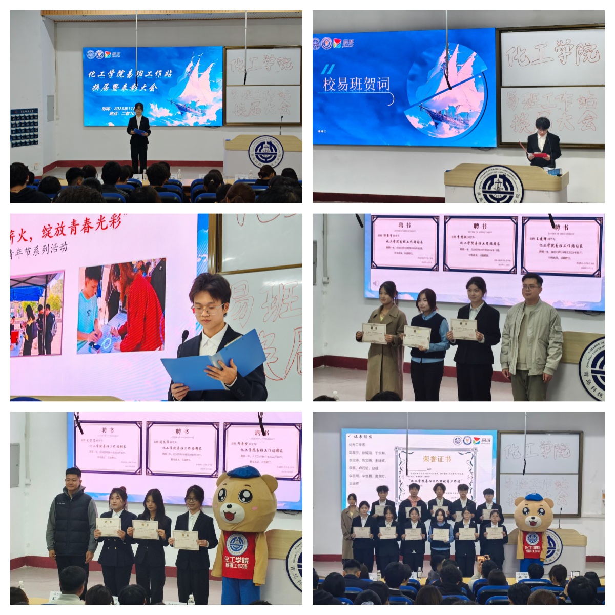 11月4日下午,化工学院易班工作站2024-2025年度换届暨表彰大会于第二教学楼101室顺利召开。学院团委副书记兼学工办副主任柳晓阳,化工学院易班工作站指导老师赵建滕,校易班代表,环境学院、生物工程学院易班代表,以及化工学院易班工作站全体成员参加本次会议。