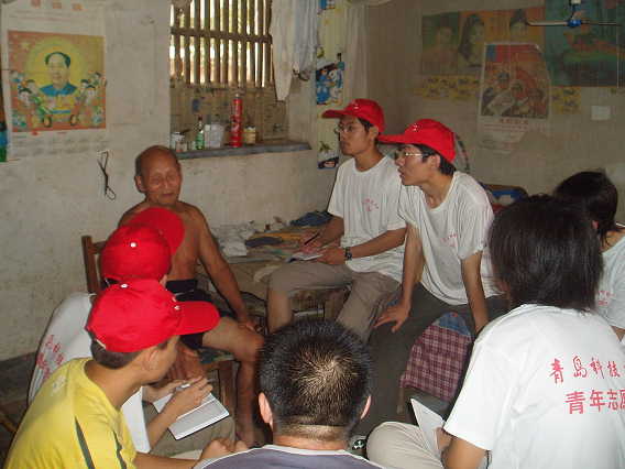 继上午走访了徐从义,解德荣两位老党员之后,青科大关注农村“留守”老人和儿童暨农村合作医疗调研服务团,于7月21号下午来到了高寨子,继续走访老红军、老党员,聆听他们在解放战争时期的光荣事绩,接受爱国主义教育,并为他们免费办理农村合作医疗证。