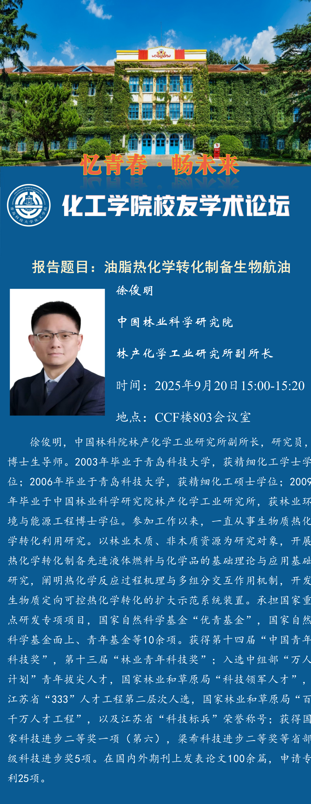 化工学院校友学术论坛——徐俊明:油脂热化学转化制备生物航油