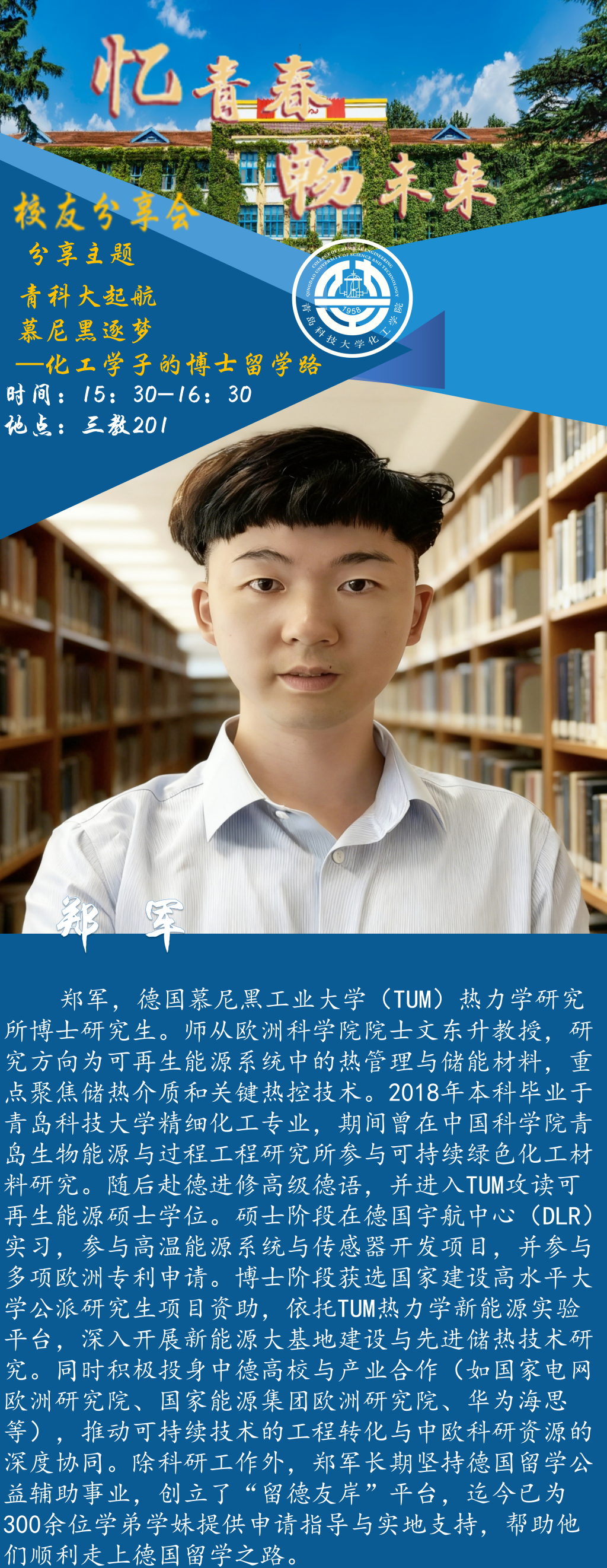 化工学院校友海外论坛——郑军:青科大起航,慕尼黑逐梦:化工学子的博士留学之路