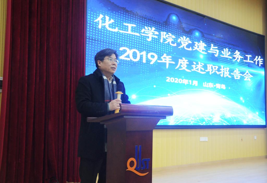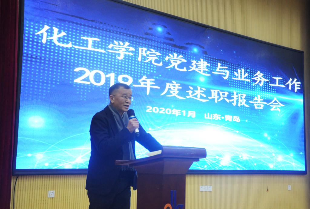 1月7日下午,化工学院2019年度党建与业务工作述职报告会在四方校区讲学厅举行,学院党政领导刘福胜、钱翌、王许云、孙明媚,各党支部、教研室、管理部门负责人及教职工100余人参加,会议由党总支书记钱翌主持。