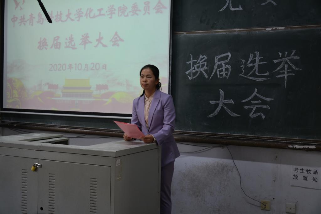 10月20日下午,中共青岛科技大学化工学院委员会换届选举大会在一教302隆重举行。大会审议通过了化工学院党委工作报告(2017—2020)和党费收缴、使用和管理情况的报告,选举产生了新一届化工学院党委委员。