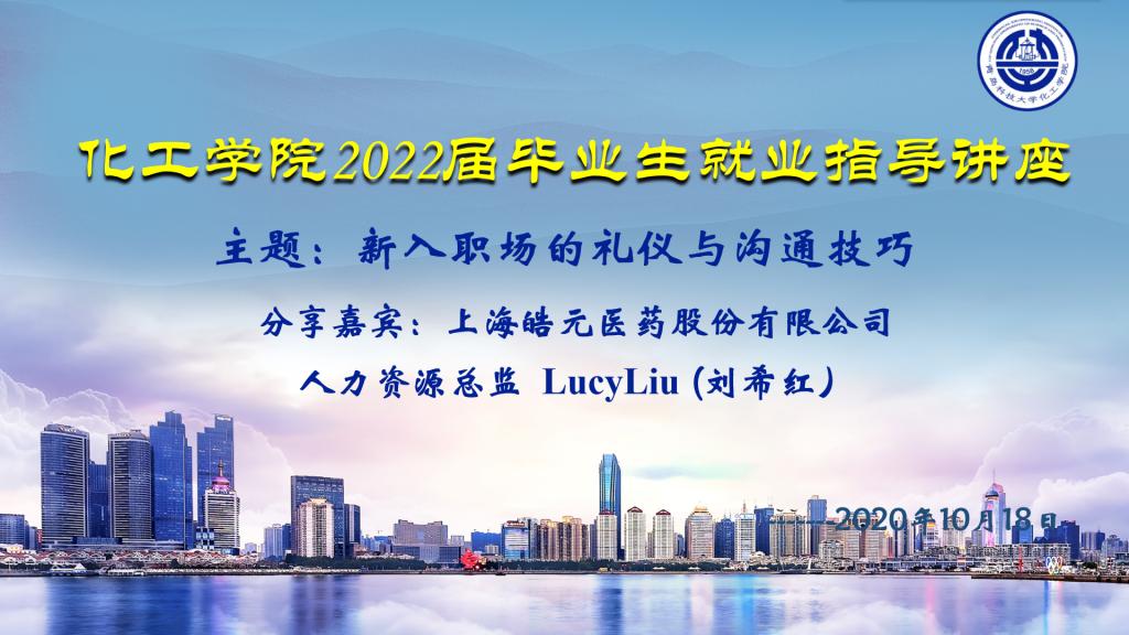 为提升毕业生就业技能,切实完善发展型育人培养模式,保障毕业生高水平、高质量“双高”就业。3月23日,化工学院通过腾讯会议平台举办2022届毕业生就业指导讲座,特邀上海皓元医药股份有限公司人力资源总监刘希红作题为《新入职场的礼仪与沟通技巧》的线上分享。