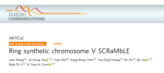 2018年9月17日,在最新一期上线的国际高水平学术期刊《自然·通讯》上刊载了一篇名为《环形5号染色体基因组重排》的论文。文章公布了天津大学元英进团队首次将自主设计合成的5号酿酒酵母环状染色体进行基因组重排的相关研究成果,为探索环形染色体结构变异和功能提供了新的研究思路和模型。该论文的共同第一作者系化工学院2015届制药工程本科毕业生王娟。