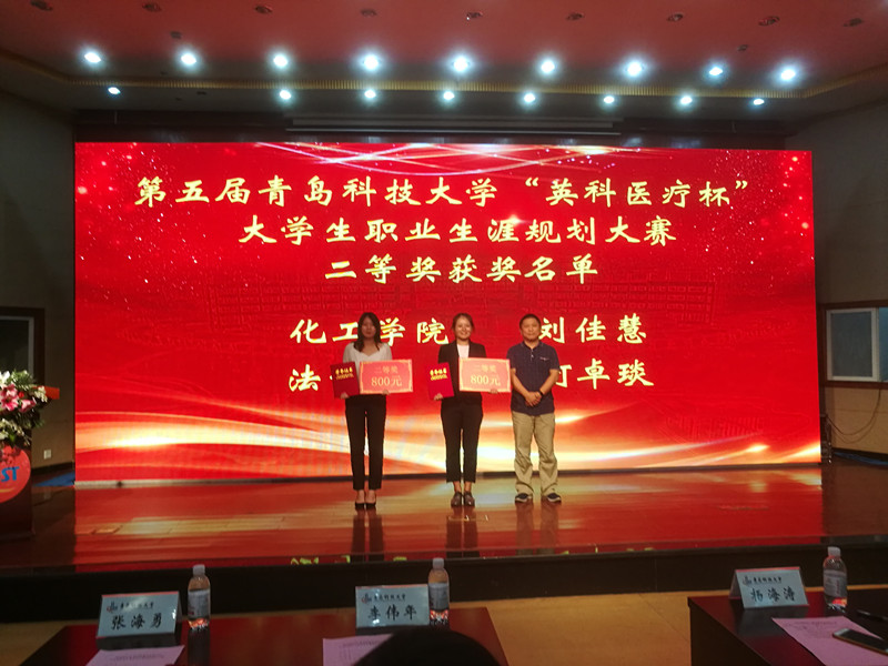 9月13日下午,由学生工作处主办、艺术学院承办的“英科医疗杯”第五届青岛科技大学大学生职业规划大赛决赛在崂山校区第一报告厅举行,化工学院刘佳慧凭借出色的发挥和优异的表现获得第二名的好成绩,化工学院获得大赛优秀组织单位和优秀助演团队奖。