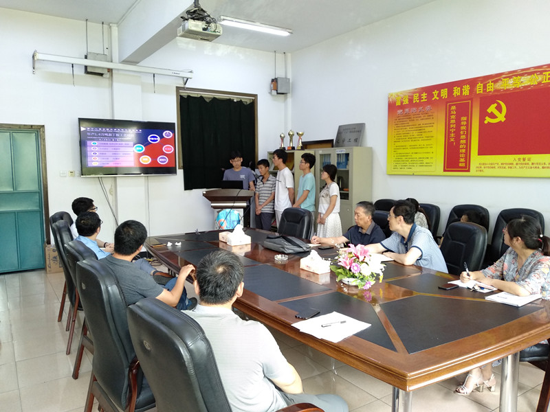 7月18日14:00-16:00,由田文德、孙晓岩、王政、王浩、陶少辉、徐环斐老师组织的专家组,听取了5支队伍的ppt汇报,并针对发现的问题进行了提问和指导。参赛队伍的汇报分为3大部分:(1)各队队长上台以PPT形式汇报作品内容;(2)各队员轮流发言,就作品中的各项具体内容逐一介绍;(3)各位老师针对各队作品情况给出针对性建议。