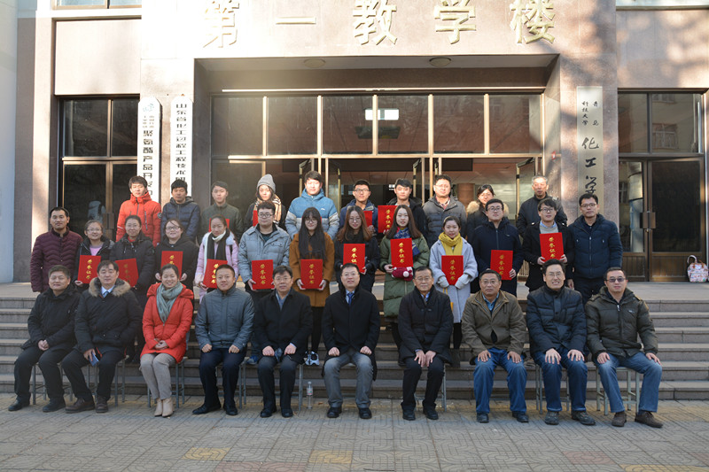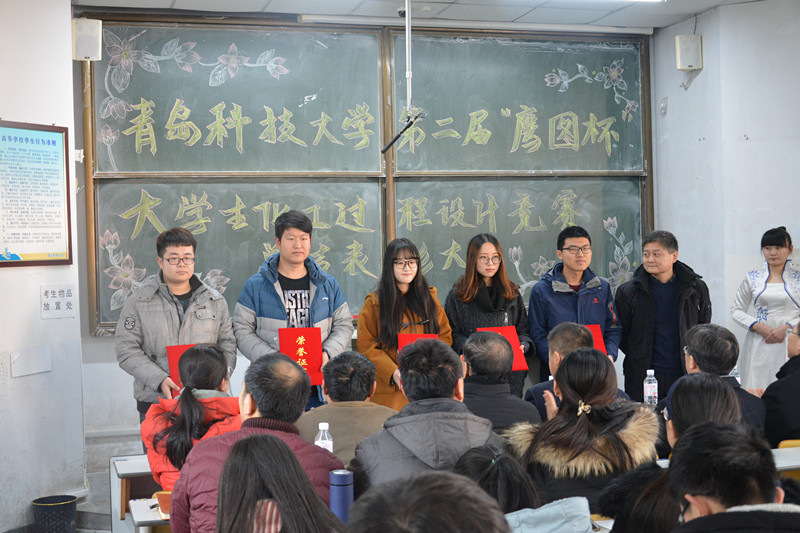 田文德介绍了比赛情况并宣读了青岛科技大学第二届“鹰图杯”大学生化工过程设计竞赛获奖名单。与会领导老师为获奖老师和学生颁奖。