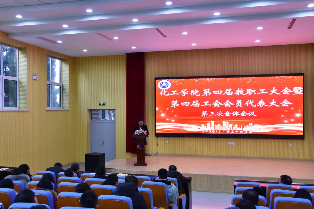 1月8日下午,化工学院第四届教职工代表大会暨第四届工会会员代表大会第三次全体会议在四方校区讲学厅举行,化工学院党政领导刘福胜、钱翌、田文德、刘仕伟、孙明媚及教职工近百名参加,会议由党总支书记钱翌主持。