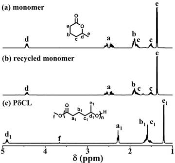 通过筛选系列具有不同结构和pKa值的脲作为助催化剂,与KOMe组成二元催化体系,他们成功实现了δ-己内酯的“活性”/可控开环聚合,聚合表现为一级动力学,所得聚合物端基、分子量及其分布可控。使用有机磷腈碱tBu-P2为催化剂时,可以得到分子量高达100 kDa的聚酯产物。聚合反应的焓变和熵变分别为-12.8 kJ mol-1和-40.6 J mol-1K-1,对应在25°C下的聚合吉布斯自由能为-0.7 kJ mol-1。有趣的是,以辛酸亚锡为催化剂,得到的聚酯产物PδCL在130°C下通过减压蒸馏可以完全解聚回收得到高纯度的δ-己内酯(产率~99%),成功建立了“单体-聚合物-单体”的闭合循环。