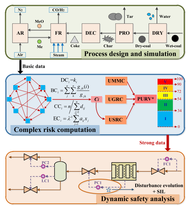 首先,田文德教授团队提出了一种基于过程建模和复杂风险计算的CCLGS动态安全控制策略。利用工艺机理仿真对CCLGS过程进行建模,仿真结果与实验结果吻合较好。通过构造邻接矩阵形成流程的复杂网络,进一步结合单位最大材料系数、单位一般风险系数和单位特殊风险系数计算出各个单元的风险值,定位了风险等级较高的操作单元。针对高风险单元设计了动态控制回路,通过安全完整性水平评估压力控制器的可靠性。该研究将为工业装置的安全控制,有助于提高化工工艺本质安全性。研究成果在国际知名学术期刊Energy(中科院一区TOP,IF=9)上发表了文章“Dynamic optimal control of coal chemical looping gasification based on process modeling and complex risk computation”(论文链接:https://doi.org/10.1016/j.energy.2023.128451)。青岛科技大学为论文的第一单位,化工学院田文德教授为论文的通讯作者,课题组崔哲老师为第一作者,硕士研究生孙阳为第二作者。