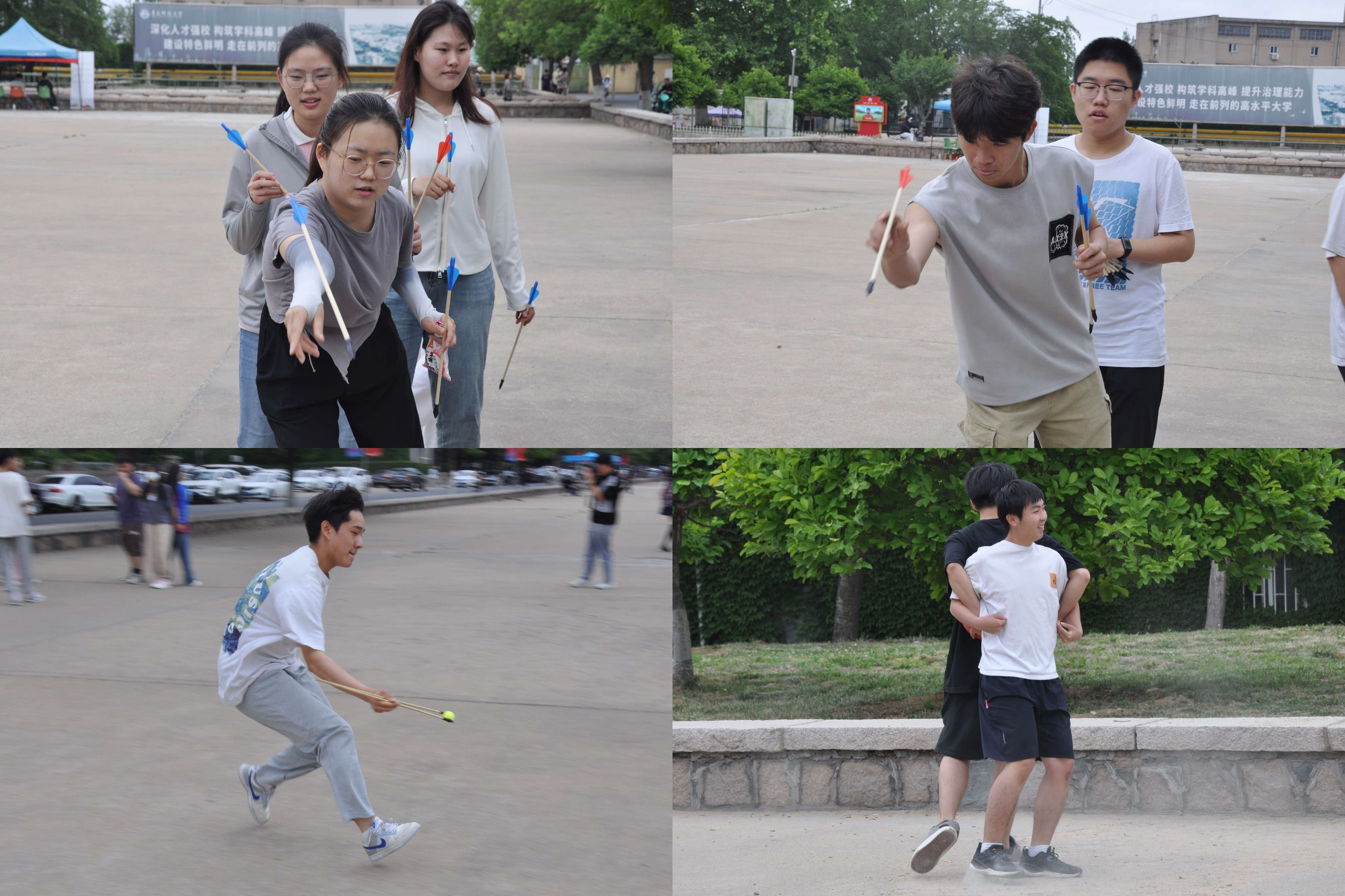 本次活动包括三个游戏,分别是:投壶挑战大比拼、背对背夹球、小球搬家。游戏以小组为单位进行,每十人为一小组,分完组,小组同学简单了解了规则后,游戏正式开始。投壶挑战时,同学们都屏气凝神,瞄准剑壶,专注投壶,中剑伴随着欢呼让气氛高涨;背对背夹球时,同学们配合默契,你追我赶,互不相让;进行小球搬家时,同学们团结协作,动作衔接紧密迅速。游戏进行场面热闹非凡,同学们热情高涨,在比赛中享受着愉快、放松的氛围。