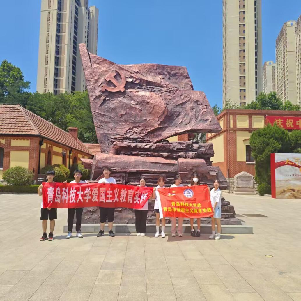 在党史纪念馆前,矗立着庄严肃穆的党旗雕塑,熠熠生辉的党徽在阳光下闪耀。实践队伍成员们怀着崇敬的心情,整齐列队,高举印有“青岛科技大学爱国主义教育实践”以及“青岛科技大学驻青岛市爱国主义教育实践”字样的横幅,留下了珍贵的合影,开启了本次探寻红色记忆之旅。