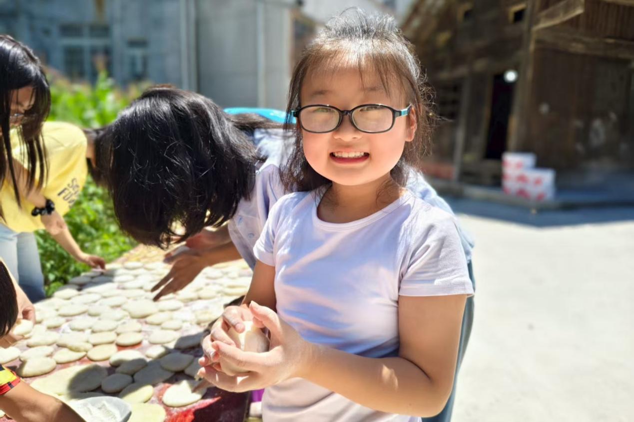 同时,在湖北广电小记者“翻山越岭”研学活动的帮助下,志愿者们引入“城乡共融”理念,带领16位来自新塘乡本地的孩子与城市孩子一同参与恩施民俗与劳动体验活动。大家一起“打糍粑”、晒土豆片、石头作画,还在硒岗庄园共赴长桌宴与篝火晚会,彼此赠礼,情谊浓厚。这次活动,不仅是文化交融的窗口,更是城乡儿童心灵相通的桥梁。通过民俗体验、艺术创作与集体联欢等环节,为城乡孩子搭建了互动成长的平台。