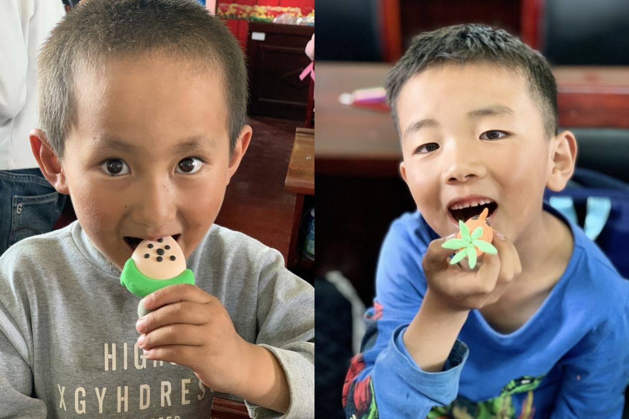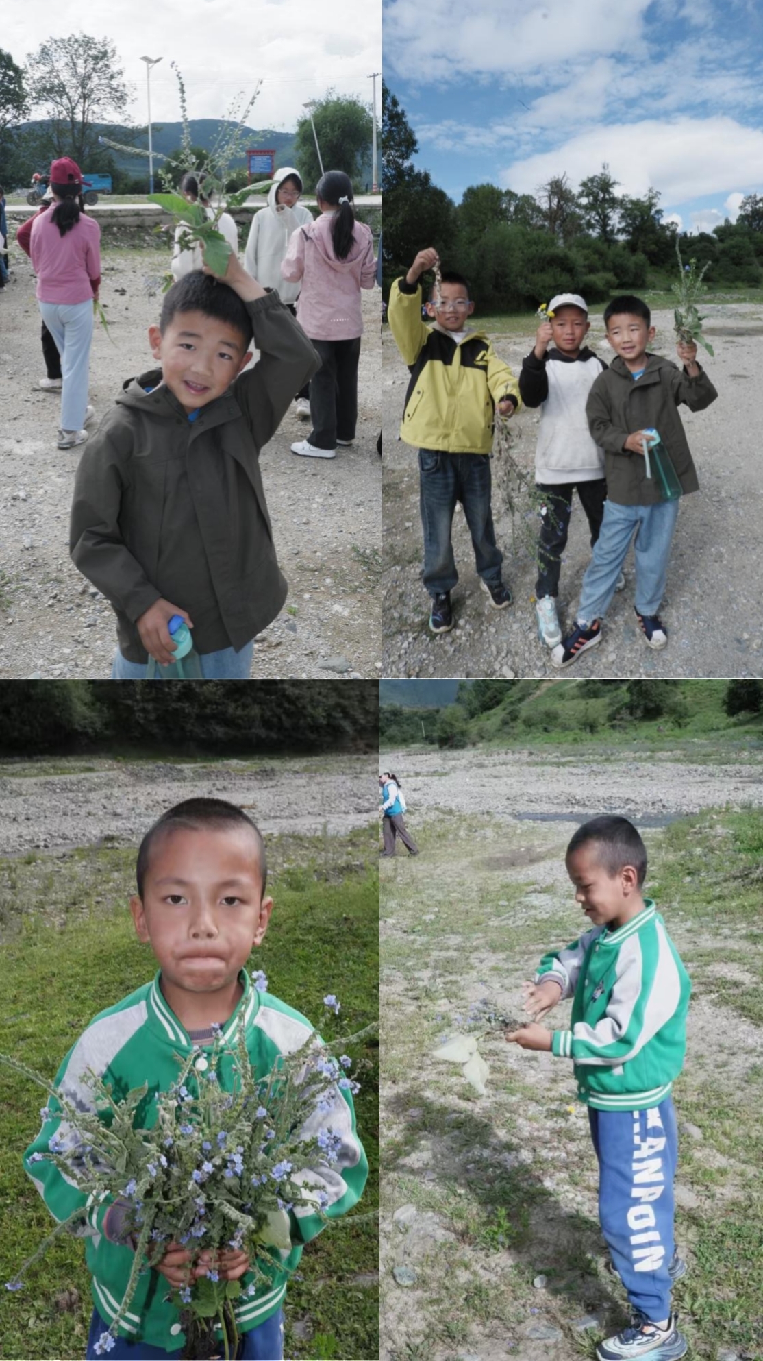 当日下午的自然教育课,带领学生在香格里拉的户外采集石头、花草,用普通话讲解植物特性与石头形态,指导清洗石头、压花粘贴、涂油固定。学生们在实操中掌握自然材料运用技巧,提升观察力与创造力,还有语言表达能力,也借由触摸自然、动手创作,厚植对自然的热爱与环保意识,理解人与自然的联结,让他们更能感受到普通话的重要性。