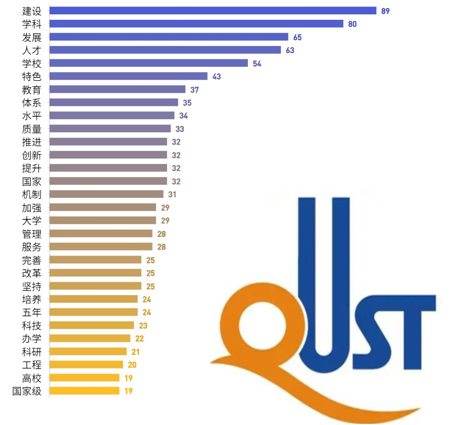 学校第十一次党代会报告意涵丰富,限于篇幅,本文于分析结果中择一二阐述。从核心理念、基础概念到报告新词,利用大数据思想,加深解读本次党代会的主题思想轮廓,充分表明学校已开启“深化人才强校、构筑学科高峰、提升治理能力,建设特色鲜明、走在前列的高水平大学”新征程。